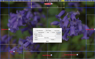 You can now define your own strokes! Open the editor by going to the Markpad menu on the main menu bar. The blue rectangles on the sides of the screen represent areas where strokes can be started from (this can be customized, click here to see how). By default, five menus areas are already defined (white dotted lines). If you click on one of them and press their